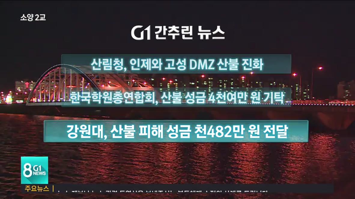 강원대학교는 오늘(23일) 산불 피해를 입은 강릉과 속초, 고성 지역 이재민들과 피해 복구를 돕기 위해 구호 성금 천 482만 원을 전달했습니다.
