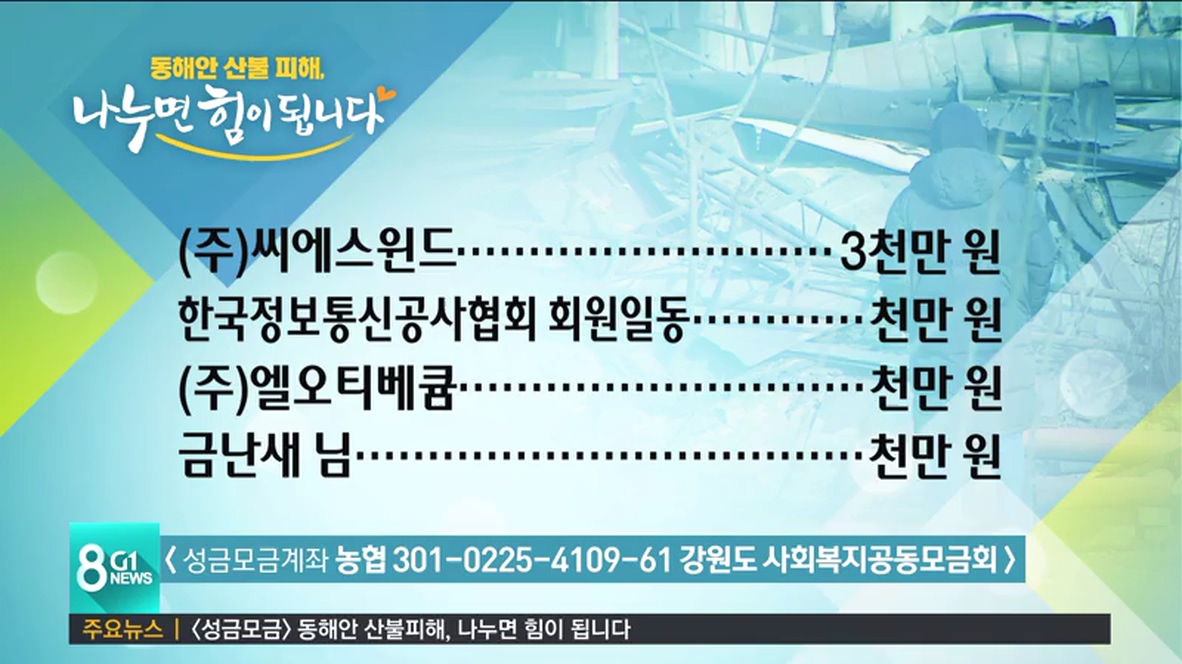 <성금 기탁자> 동해안 산불피해, 나누면 힘이 됩니다