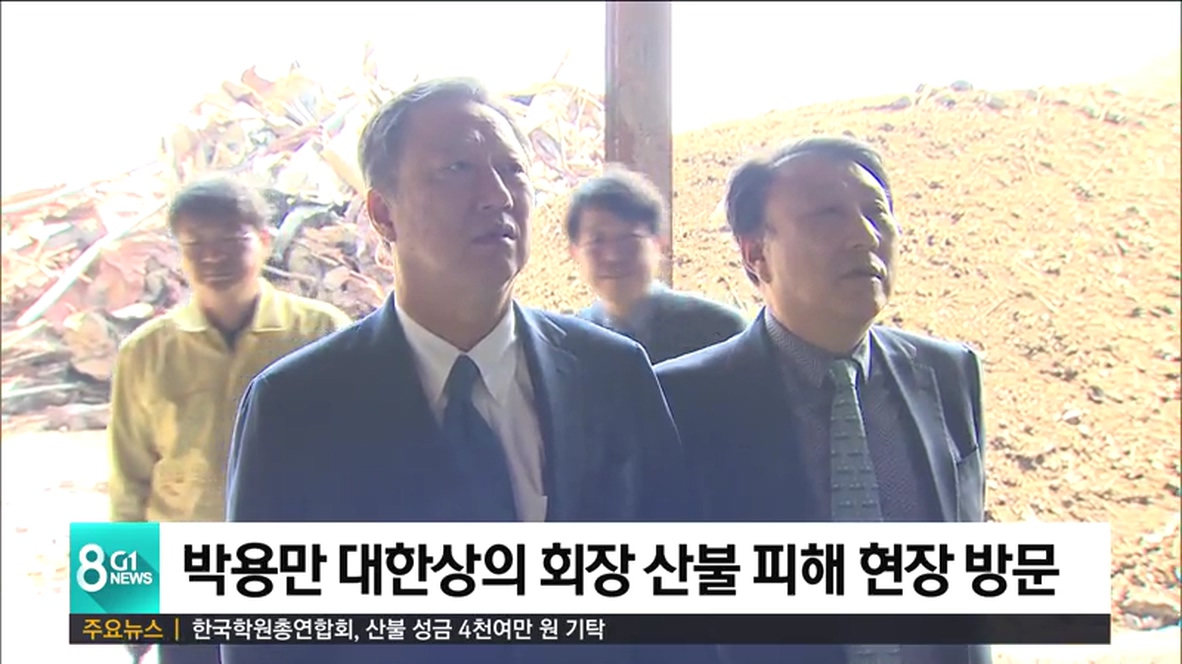 대한상공회의소 박용만 회장과 도 상공회의소 협의회 조창진 회장을 비롯한 도내 상공회의소 회장단이 오늘 산불 피해지역을 방문했습니다.