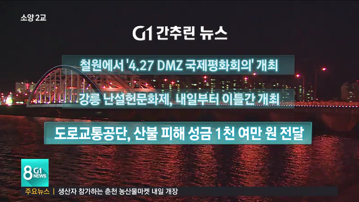 남북 정상회담 1주년을 맞아 '4.27 DMZ 국제평화회의'가 오늘(26일)부터 내일까지 철원DMZ 평화문화광장과 한탄리버스파호텔에서 열려 한반도 평화를 주제로 한 강연과 토론이 진행됩니다.