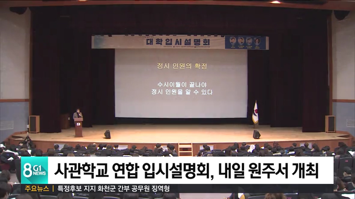 '2020 사관학교 연합 입시설명회'가 내일 오후 12시 30분, 원주 육민관고등학교에서 열립니다.