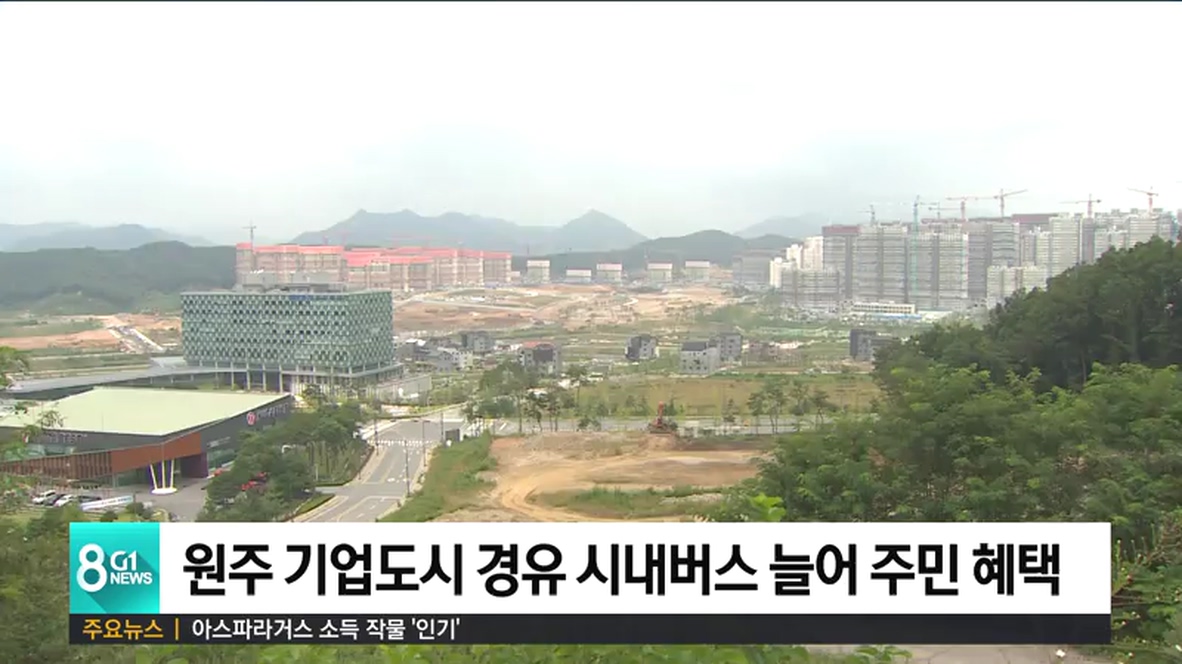 다음달부터 원주 기업도시 방면 시내버스 노선 과 버스 운행 횟수가 늘어나 주민들의 대중교통 이용 불편이 해소될 전망입니다.