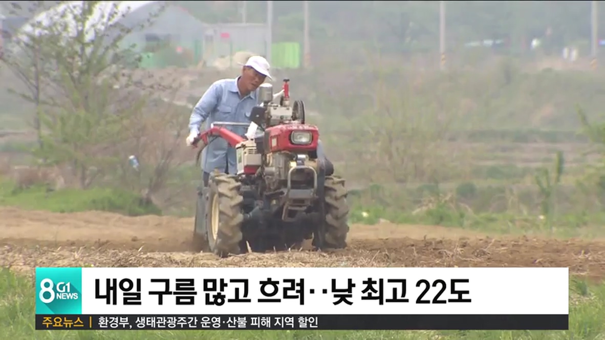 내일 아침 최저기온은 영서지역이 2도에서 9도, 영동지역이 9도에서 10도의 분포를 보이겠고, 낮 최고기온은 15도에서 22도로 예상됩니다.