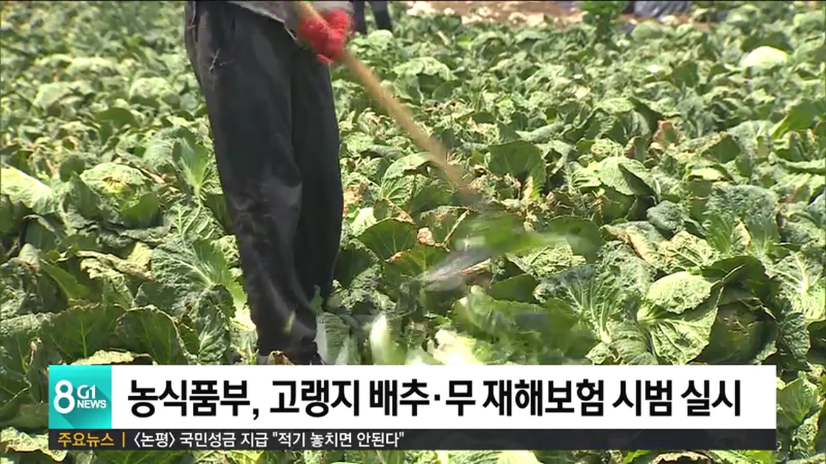 농식품부는 최근 폭염과 집중호우 등으로 노지 채소의 보험 가입 필요성이 제기되면서, 올해 배추, 무, 대파 등 대상 품목을 늘리기로 했다고 밝혔습니다.