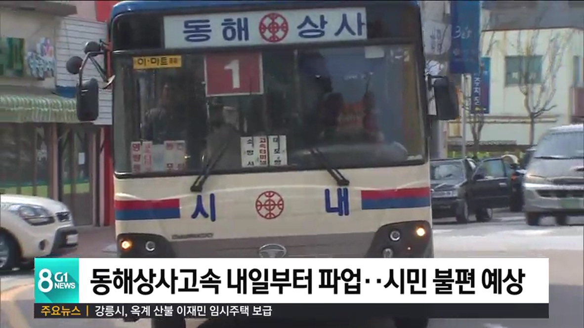 강릉과 속초, 고성 등 영동지역 4개 시.군에서 시내버스와 시외버스 노선을 운행중인 동해상사고속이 내일(29일)부터 파업에 돌입해, 시민들의 불편이 예상됩니다.