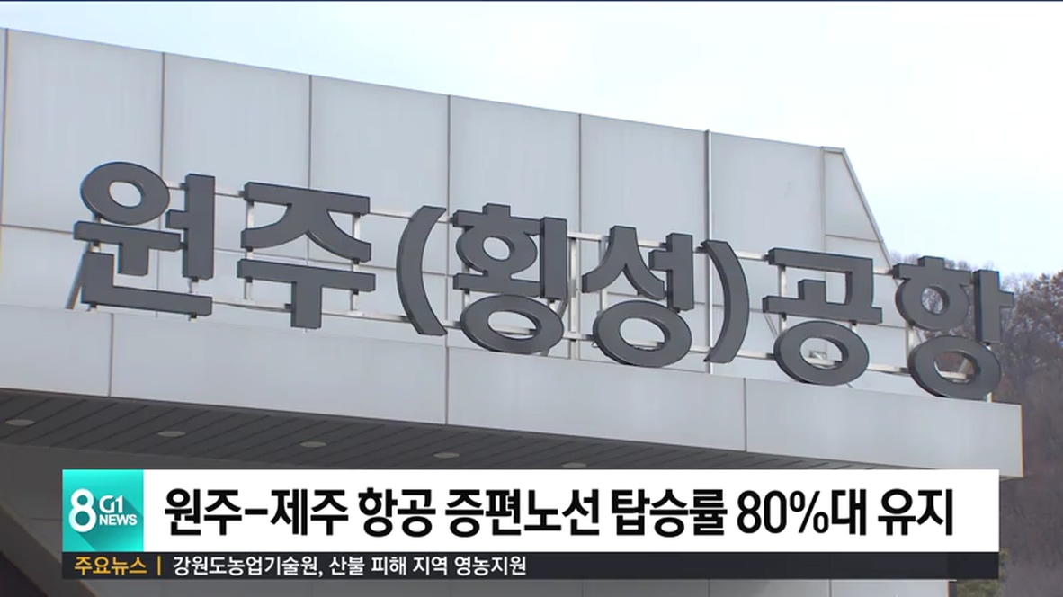원주공항에서 제주를 오가는 항공기 증편노선의 탑승률이 80% 대를 유지하고 있는 것으로 조사됐습니다.