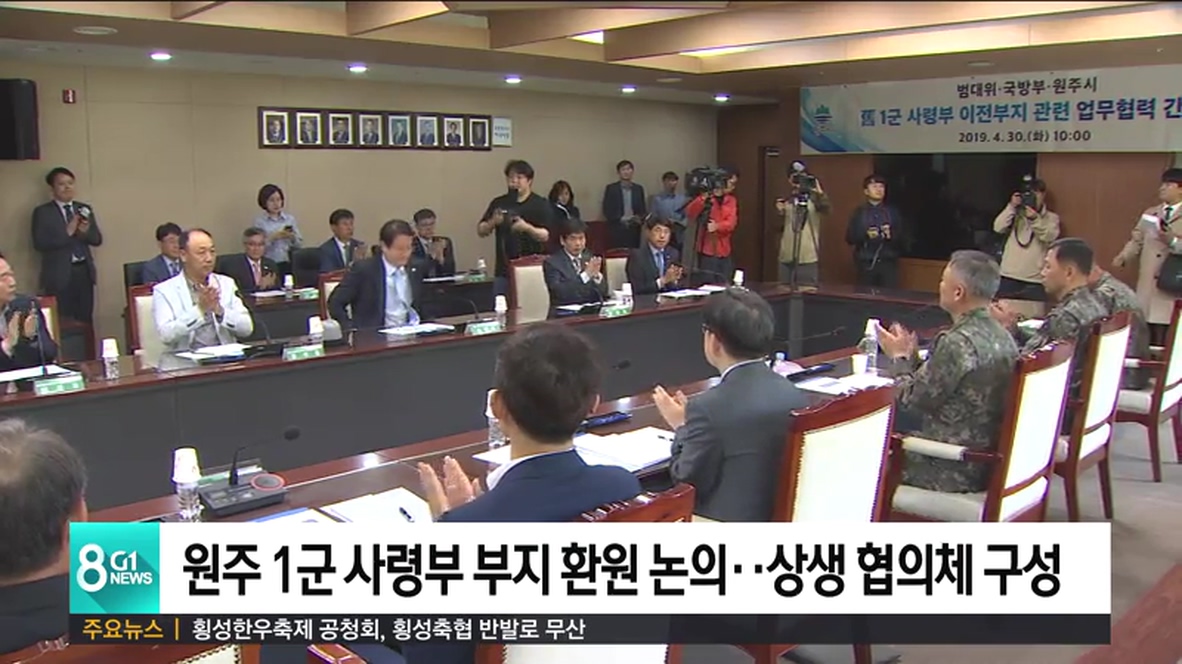 원주 옛 1군 사령부 이전부지 환원 범시민대책위원회와 원주시는 오늘 원주시청에서 국방부와 육군본부와 간담회를 열고, 민관군상생협의체를 구성하기로 했습니다.