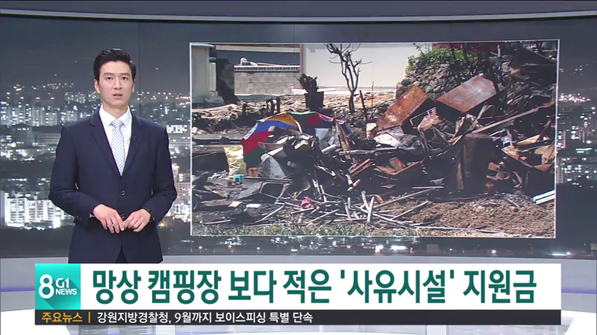 이 금액은 사유시설 전체 피해액인 303억원 보다 적고, 망상 오토캠핑장 지원금인 341억원에도 훨씬 못 미치는 수준입니다.