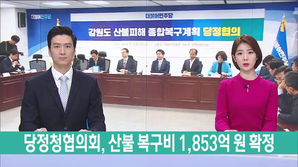 더불어민주당과 정부 그리고 청와대가 공동으로 발표한 강원 산불 피해 복구비 규모는 천 853억 원입니다.