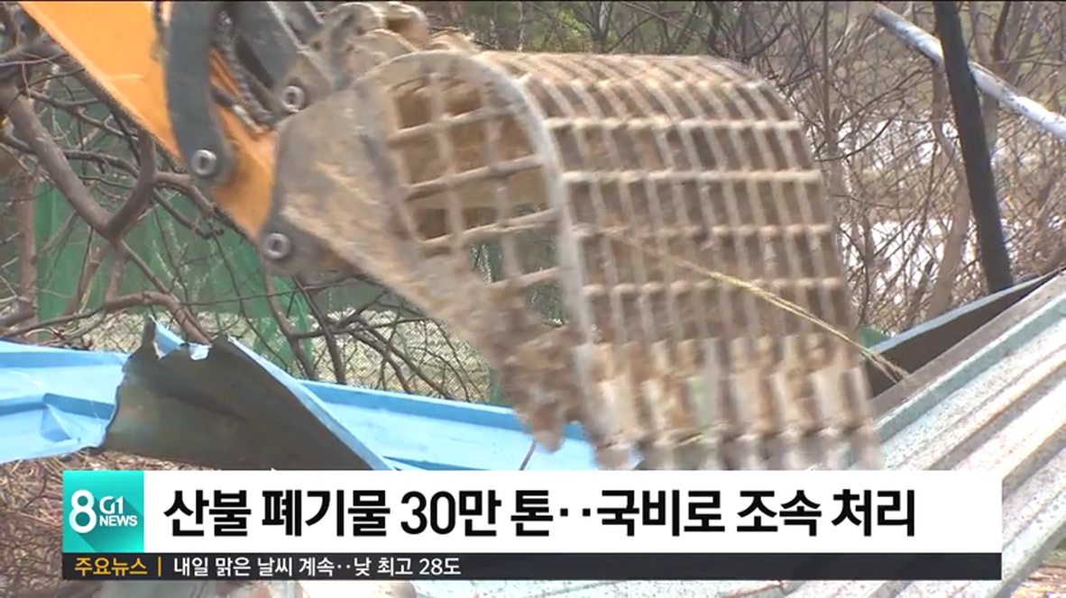 강원도는 이번 산불로 인해 5개 시군에서 발생한 폐기물이 모두 30만톤에 육박하는 것으로 보고, 조속히 처리하겠다고 밝혔습니다.