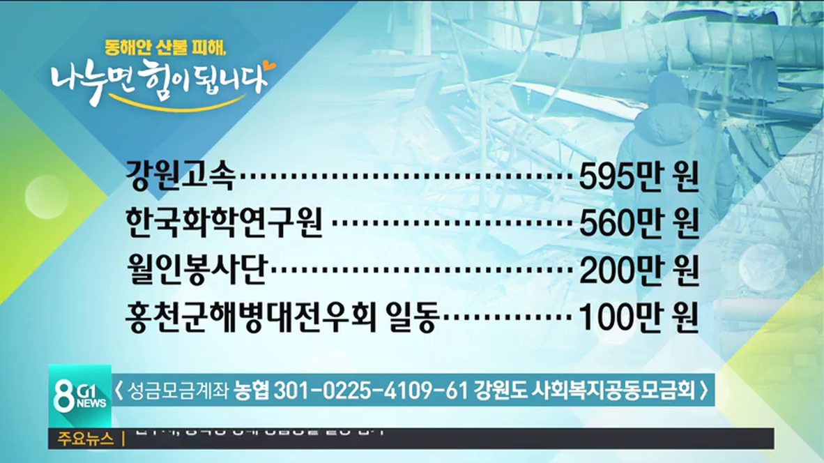 이어서, 동해안 산불 피해 복구와 이재민을 돕기 위한 성금을 보내주신 분들입니다.