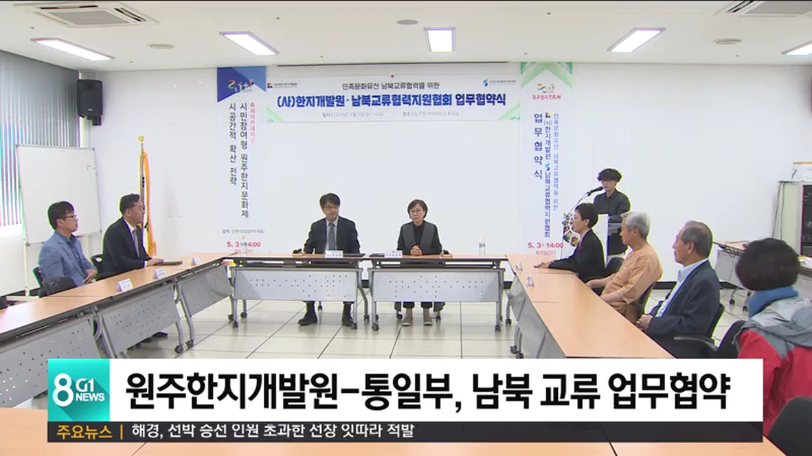 원주한지개발원과 통일부 남북교류지원협회는 오늘 원주한지테마파크에서 남북교류협력을 위한 업무협약을 체결했습니다.
