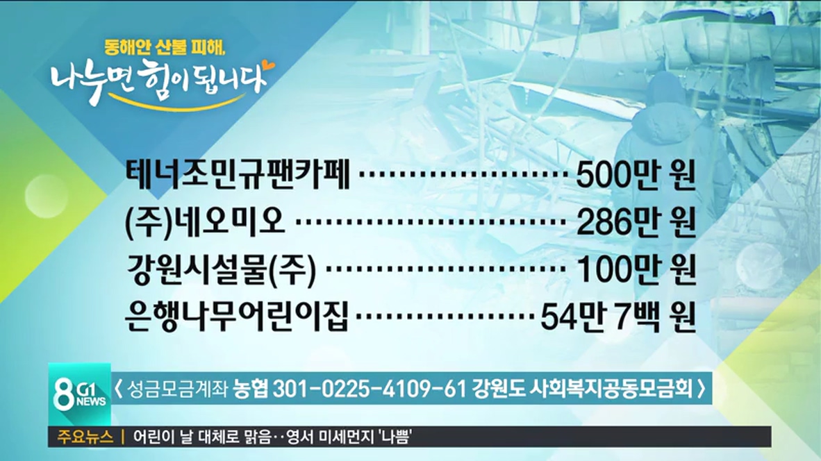 이어서, 동해안 산불 피해 복구와 이재민을 돕기 위한 성금을 보내주신 분들입니다.