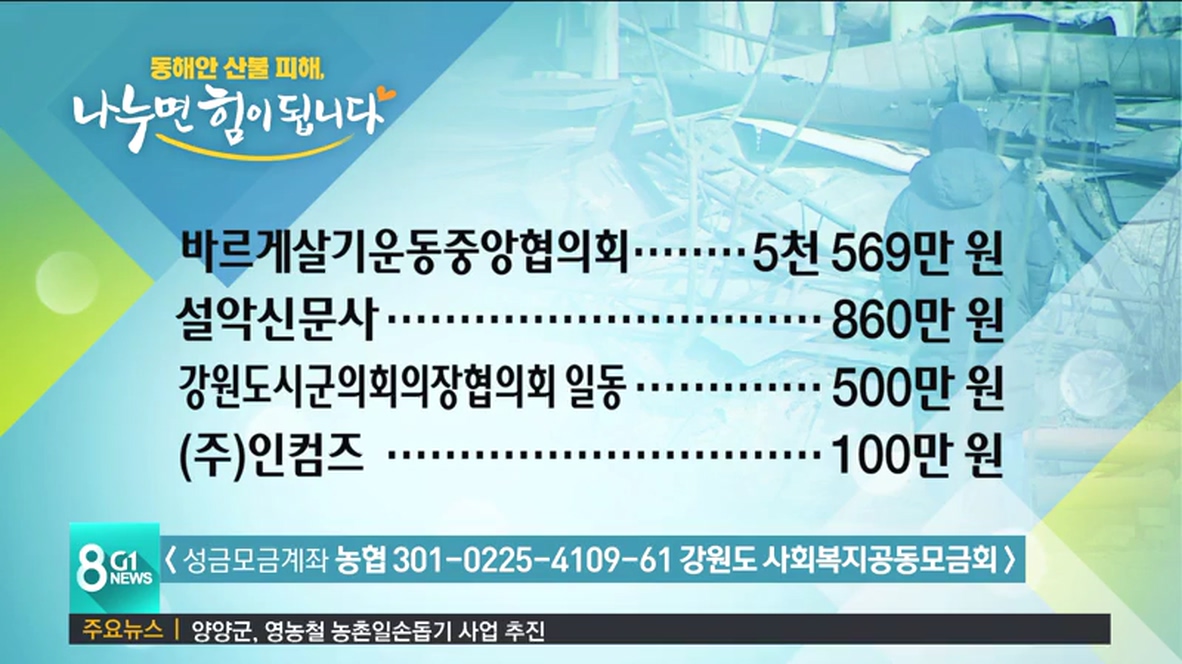 <성금 기탁자> 동해안 산불피해,나누면 힘이 됩니다