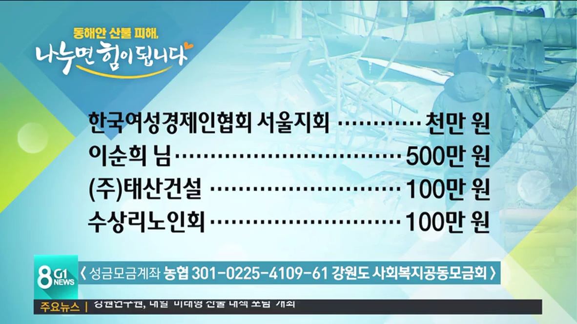 이어서, 동해안 산불 피해 복구와 이재민을 돕기 위한 성금을 보내주신 분들입니다.