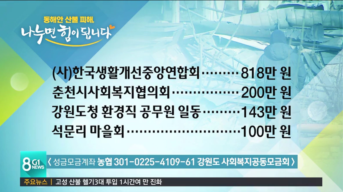 <성금 기탁자> 동해안 산불피해, 나누면 힘이 됩니다