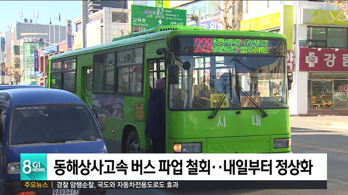 이에 따라, 지난달 29일부터 강릉과 속초, 고성 등 영동지역 4개 시.군에서 열흘 넘게 파업에 들어갔던 동해상사고속 시내버스와 시외버스가 내일 아침 첫 차부터 정상 운행 됩니다.