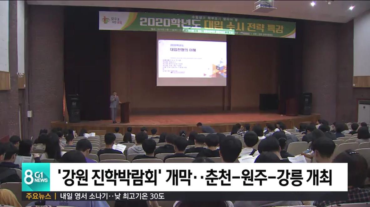 강원도교육청이 주관하는 이번 '2019 강원 진학박람회'는 오늘 강원고를 시작으로 오는 18일에는 원주고, 25일에는 강릉고 등에서 모두 세차례에 걸쳐 열립니다.