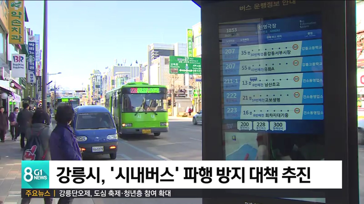 강릉시는 버스 업계의 경영난을 완화하기 위해서는 대중 교통 이용률을 높여야 한다고 보고, 중복 구간을 없애는 등 효율적인 시내 버스 노선을 짜기 위한 용역을 오는 8월까지 마무리하겠다고 밝혔습니다.