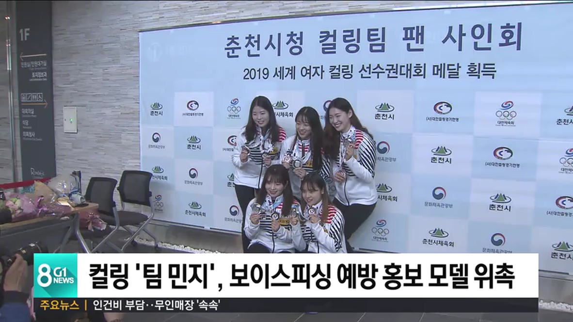 강원지방경찰청은 오는 15일 위촉식을 열고, 춘천시청 소속으로 여자컬링 국가대표팀으로 활동하고 있는 '팀 민지'를 보이스피싱 예방 홍보 모델로 위촉한다고 밝혔습니다.