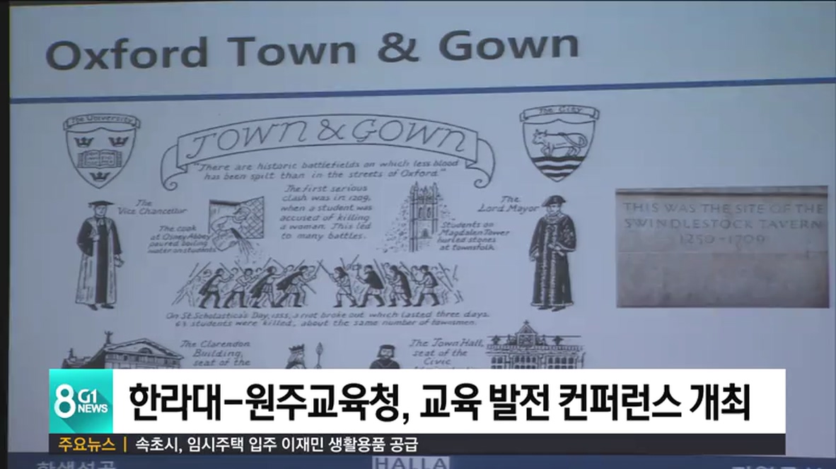 한라대학교와 원주교육지원청, 원주시 교장단이 주관한 이번 컨퍼런스에서는 '지역발전을 위한 대학의 역할'이라는 주제로 특강이 진행되고, 교육기관 간의 상호협력 방안이 논의됐습니다.