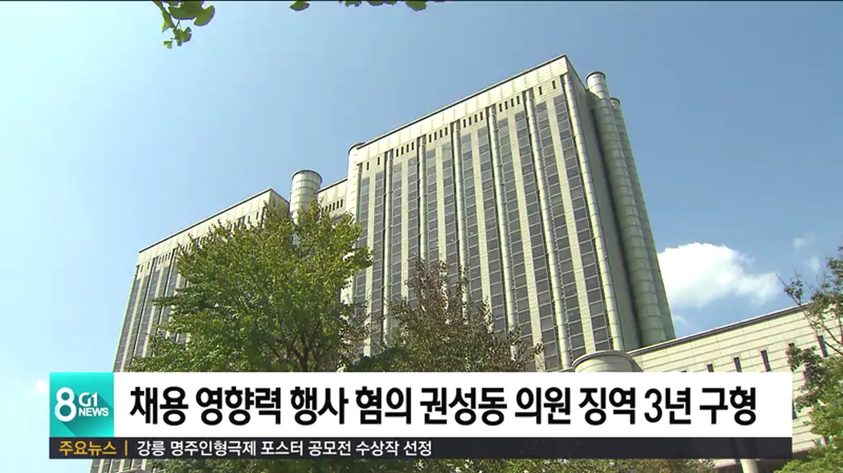 지인을 강원랜드에 채용하도록 영향력을 행사한 혐의로 기소된 권성동 의원에게 징역 3년이 구형됐습니다.
