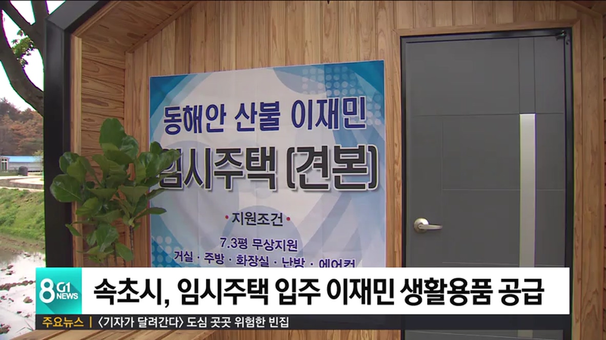 속초시, 임시주택 입주 이재민 생활용품 공급