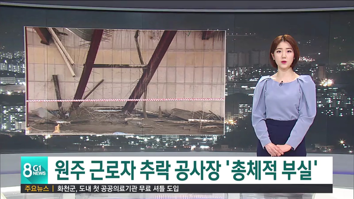 G1 뉴스에서는 근로자 추락 사고가 발생한 원주 기업도시의 한 공장 신축 과정에서,