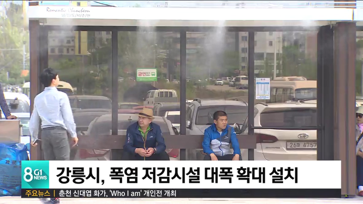 이에따라 강릉시는 다음달부터 오는 9월말까지 고속버스터미널 등 버스정류장 4곳에 쿨링포그를 확대 설치할 계획입니다.