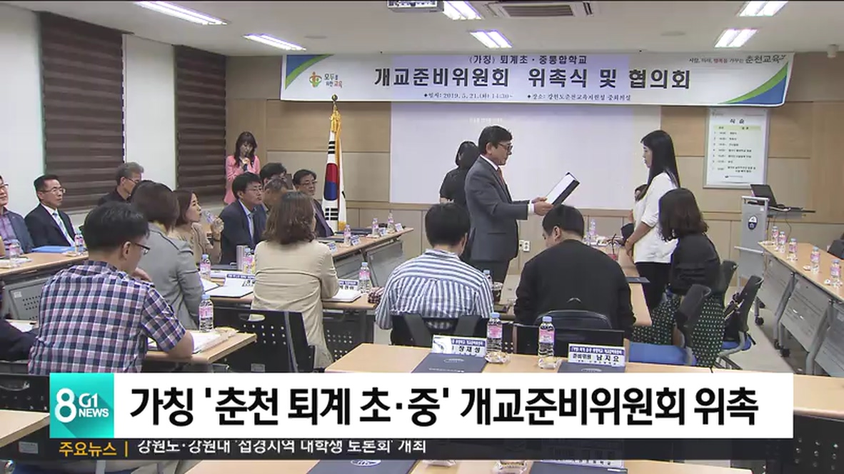 도내에서 처음으로 유치원과 초등학교, 중학교가 통합학교로 운영될 예정인 가칭 '춘천 퇴계초·중학교' 개교준비위원회 위촉식이 춘천교육지원청에서 열렸습니다.