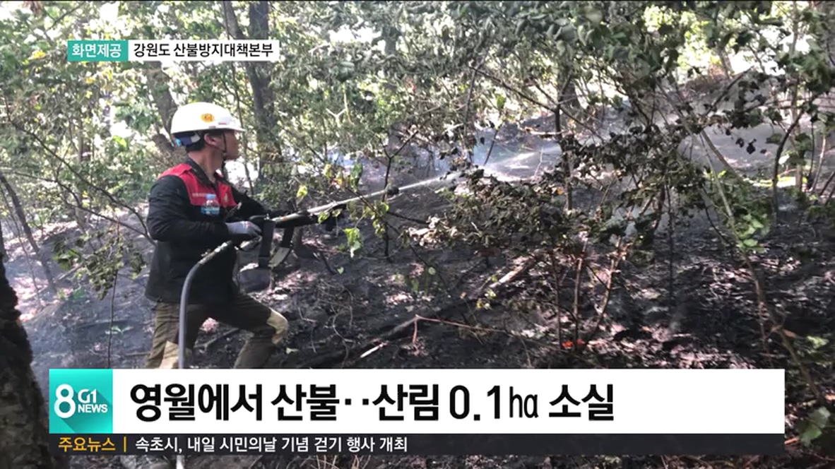 오늘 오후 1시쯤 영월군 영월읍 정양리의 한 야산에서 불이 나, 산림 0.1㏊를 태우고 1시간 여만에 꺼졌습니다.