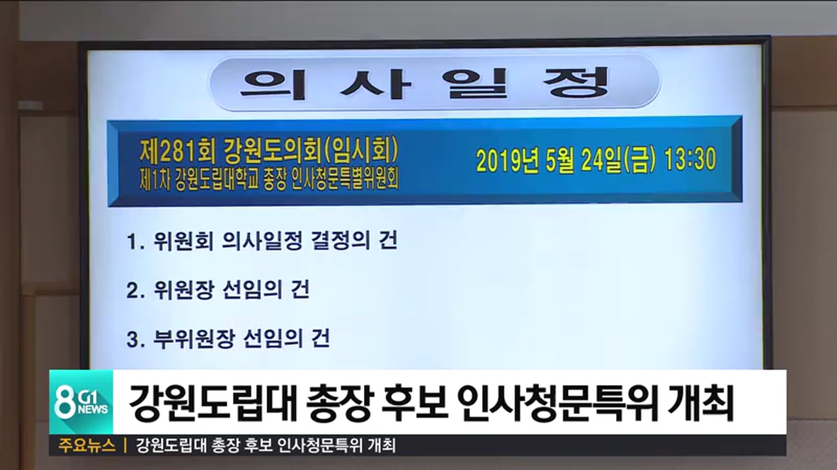 강원도립대학교 제10대 총장을 선임하기 위한 '제1차 강원도립대 총장 인사청문특별위원회'가 강원도의회 운영위원회에서 열렸습니다.