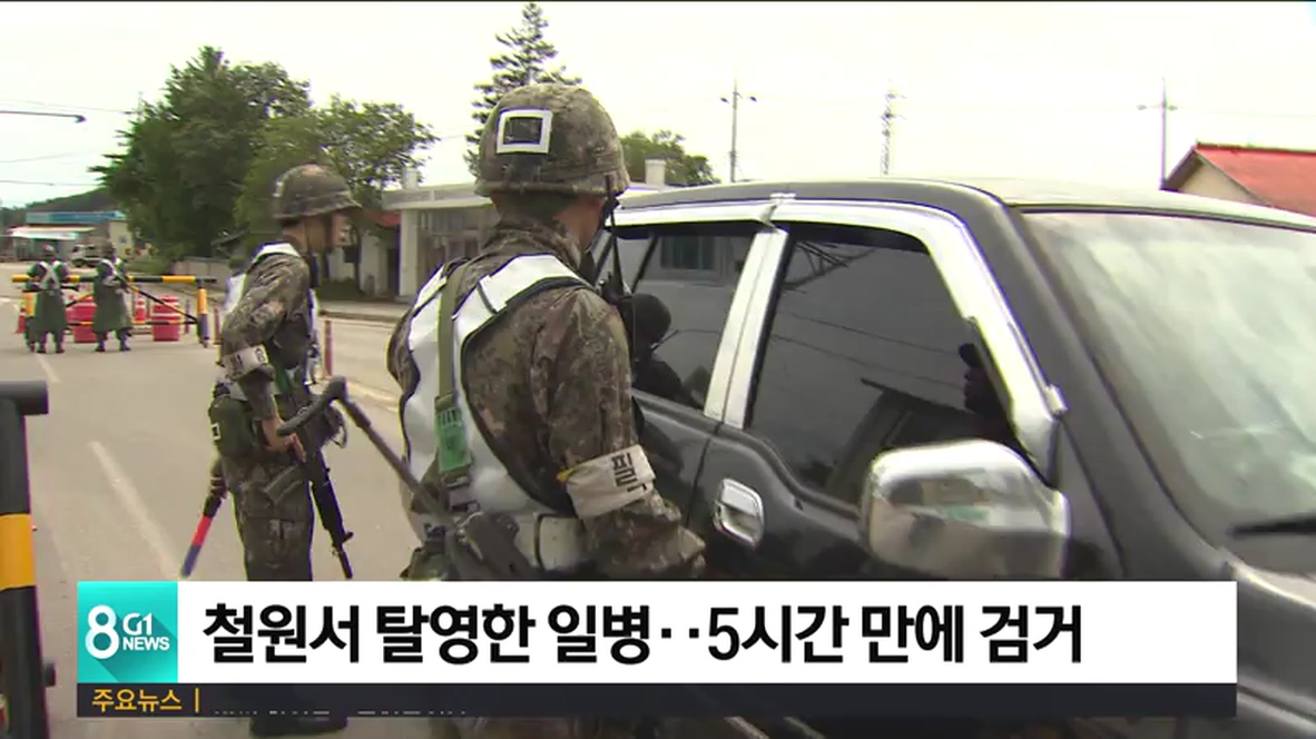 군 당국과 경찰에 따르면, 어제 오후 7시54분쯤 철원군 서면 와수리 인근에서 비무장 상태로 탈영한 A 일병이 오늘 오전 0시54분쯤 검거됐습니다.