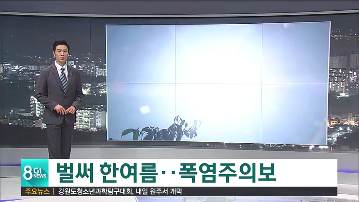 오늘 낮 최고 기온은 화천 34도를 비롯해 춘천 33도, 원주 32도, 강릉 33.7도 등 대부분 지역이 30도를 웃돌았습니다.