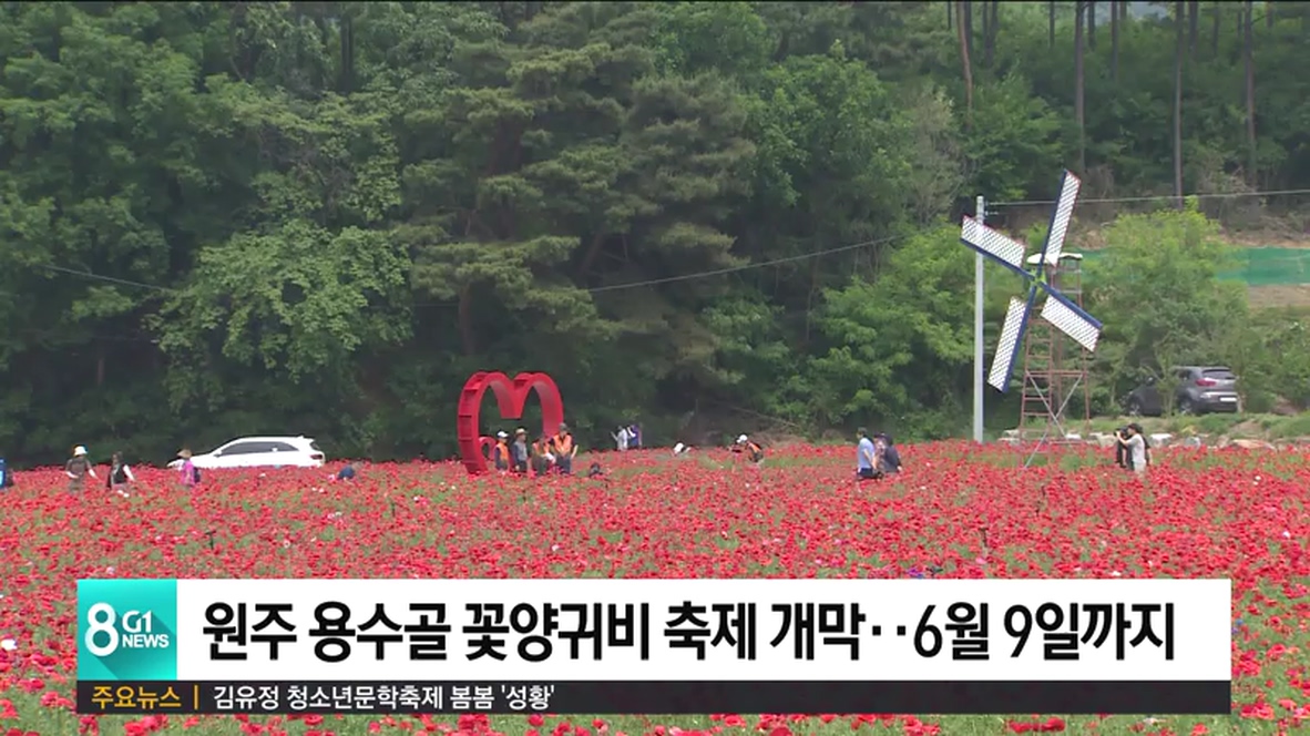 '제 12회 용수골 꽃양귀비 축제'가 오늘 원주시 판부면 용수골 일원에서 개막해, 다음달 9일까지 이어집니다.