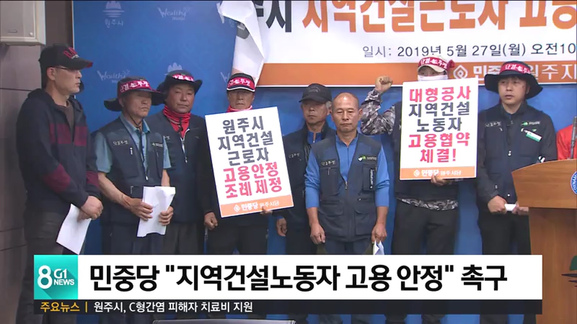 민중당 원주시지역위원회는 기자회견을 열고, "불법 외국인 고용으로 지역 건설노동자들이 발붙일 곳이 점점 좁아지고 있다"며 "대규모 공사에 지역업체를 참여시키는 일뿐만 아니라, 지역건설근로자 채용도 강제해야 한다"고 주장했습니다.