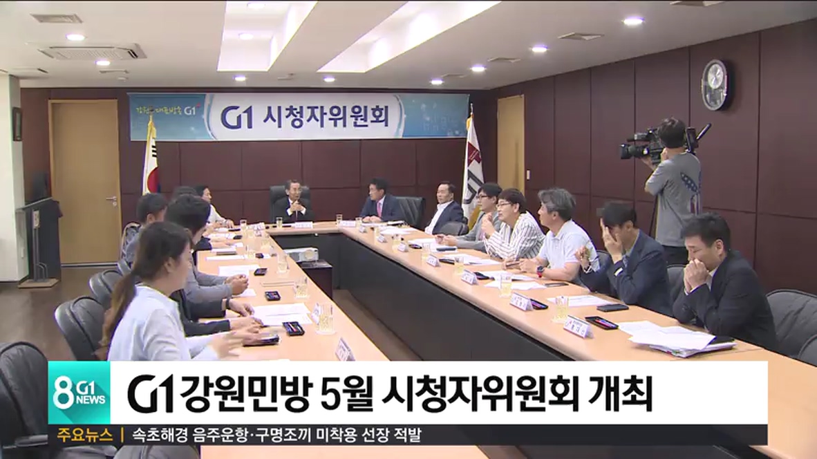 G1강원민방 제17기 시청자위원회 5월 회의가 오늘, G1 춘천 본사 대회의실에서 각계 전문가 위원들이 참석한 가운데 열렸습니다.