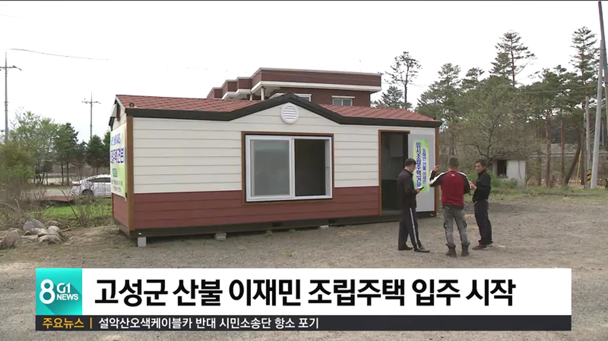고성군은 산불피해 이재민이 거주할 조립주택 7채가 어제 토성면 용촌1리에 설치돼 7가구가 입주를 마쳤다고 밝혔습니다.