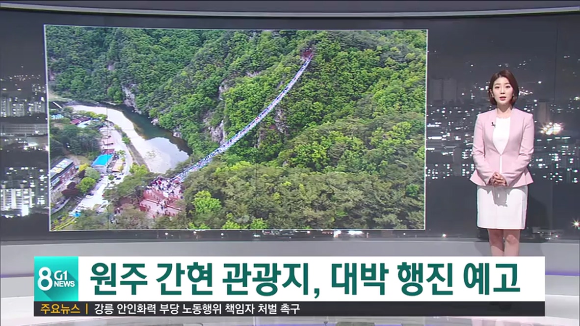 "원주시는 소금산 출렁다리 붐을 이어가기 위해, 주변 관광시설 개발을 꾸준히 추진하고 있는데요. 지금 제가 있는 이곳, 스카이워크 브릿지도 그 중 하나입니다."