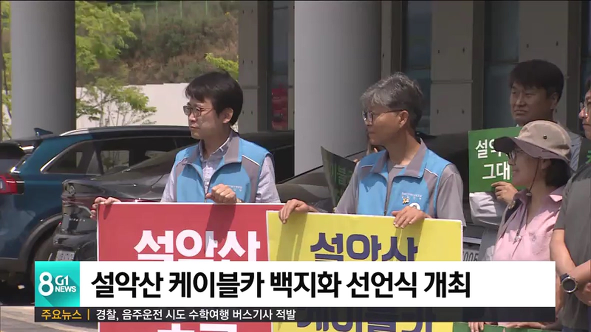 설악산국립공원지키기국민행동과 케이블카반대설악권주민대책위원회는 오늘 원주지방환경청 앞에서 설악산 케이블카 사업의 백지화를 촉구하는 선언식을 개최했습니다.