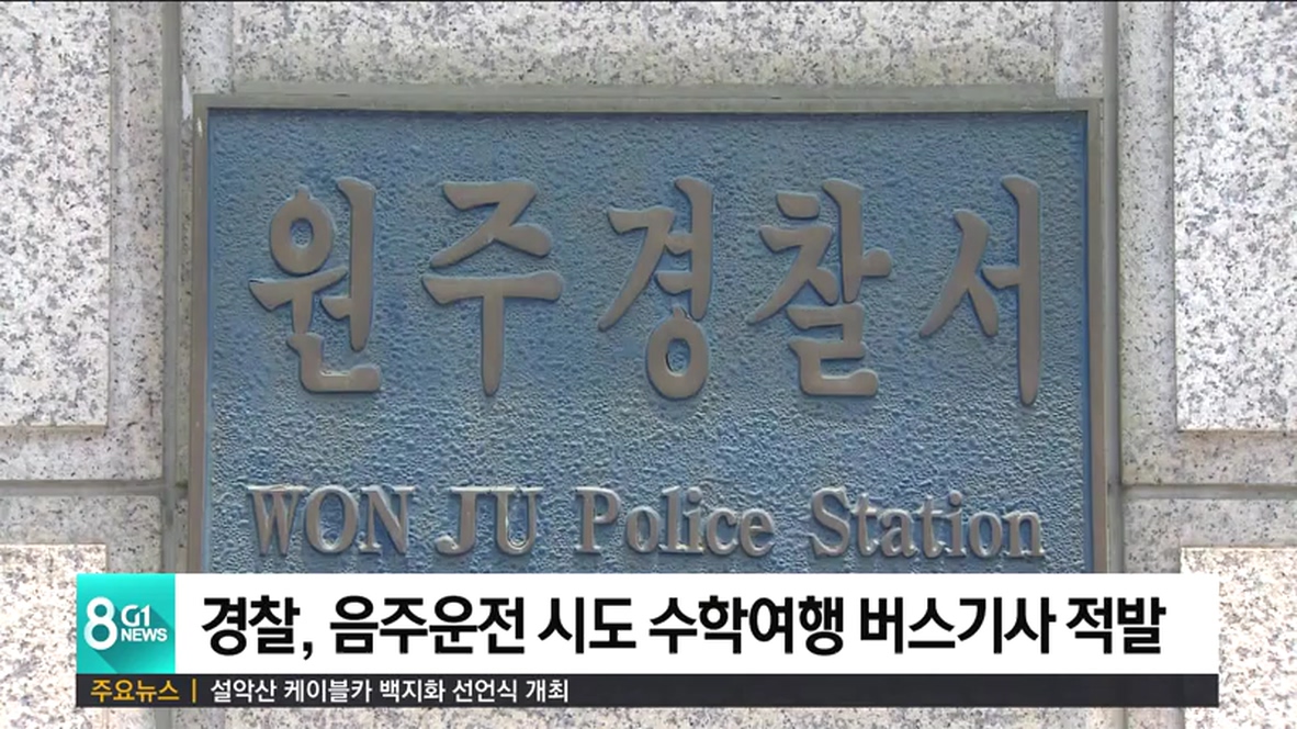 경찰은 지난 29일 오전 7시 20분쯤, 원주의 한 중학교 운동장에서 수학여행단 버스 10대의 운전기사를 상대로 출발 전 음주단속을 한 결과, 버스기사 44살 A씨를 적발해 운전자를 교체했다고 밝혔습니다.