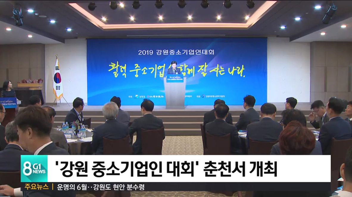 도내 중소기업인과 경제기관 관계자 등 200여 명이 참가한 가운데, 오늘(3일) 춘천 스카이컨벤션에서 '2019 강원 중소기업인 대회'가 열렸습니다.