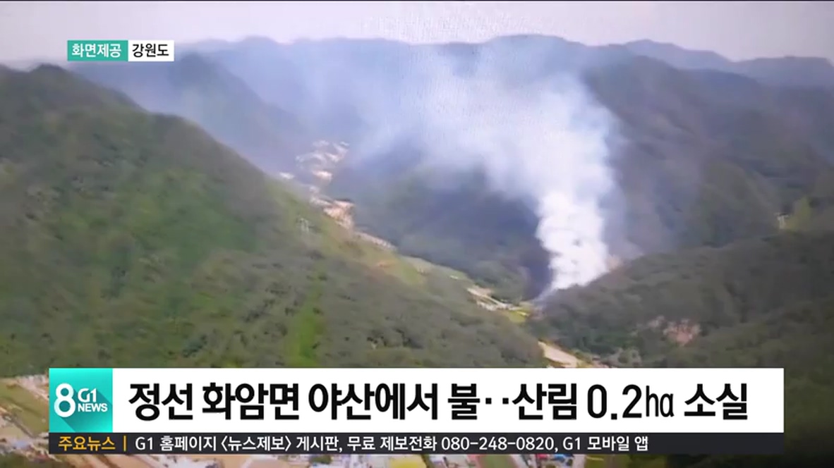 오늘 오후 2시 15분쯤, 정선군 화암면의 한 야산에서 불이 나, 산림 0.2㏊를 태우고 1시간 10여분 만에 꺼졌습니다.