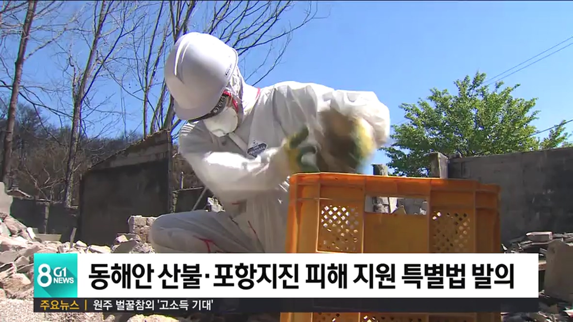 동해안 산불 피해 주민들이 주택 복구비와 복구 기간 임대주택을 지원 받을 수 있도록 하는 '강원산불 피해자 주거 지원 등을 위한 특별법'이 발의됐습니다.