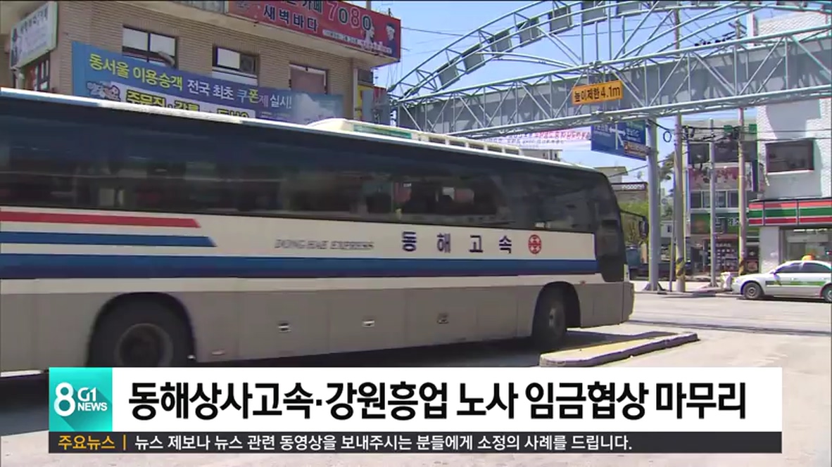 동해상사고속과 강원흥업 노사는 최근 시내버스와 시외버스 기사들의 임금 협상과 근로조건 등에 최종 합의했습니다.