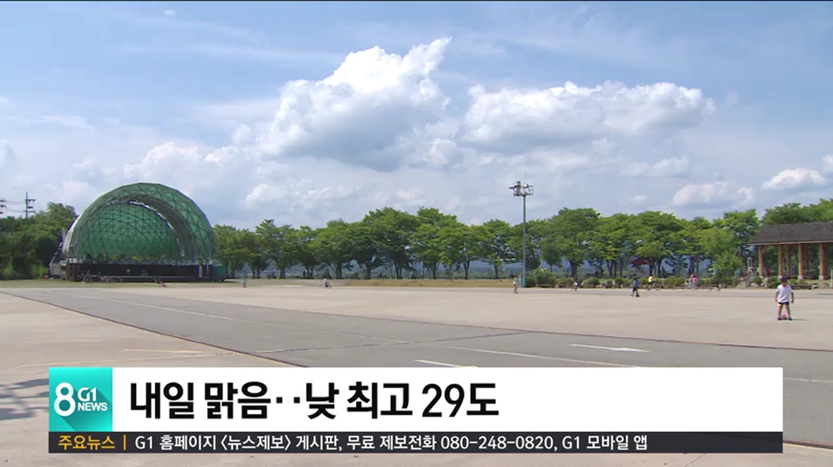 아침 최저기온은 영서지역이 7도에서 14도, 영동지역이 12도에서 14도의 분포를 보이겠고, 낮 최고기온은 20도에서 29도로 오늘보다 덥겠습니다.