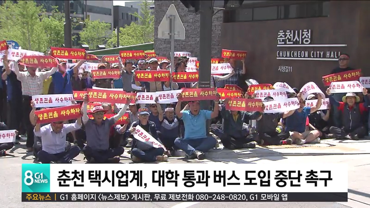 춘천 택시업계, 대학 통과 버스 도입 중단 촉구