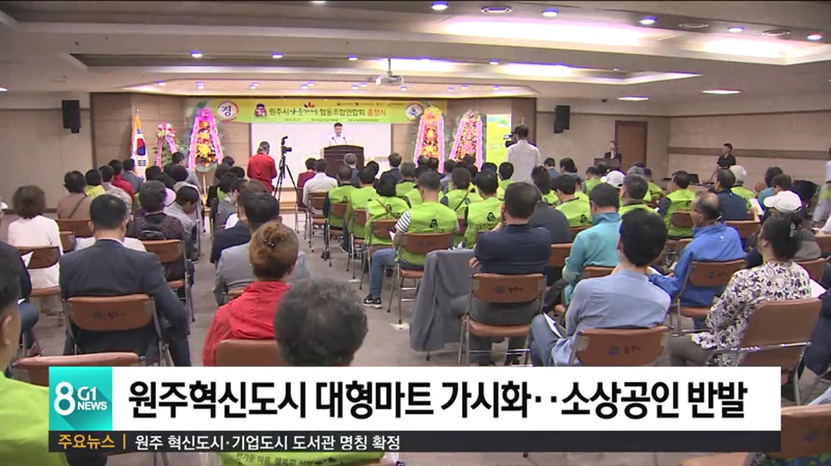 원주시 나들가게 협의회와 협동조합연합회는 어제 "영화관과 상점 등이 포함된 대형마트가 들어서면 지역 풀뿌리 상권을 무너질 것"이라며 원주시와 시의회에 진정서를 제출하고 집회 등 대응방안을 논의했습니다.