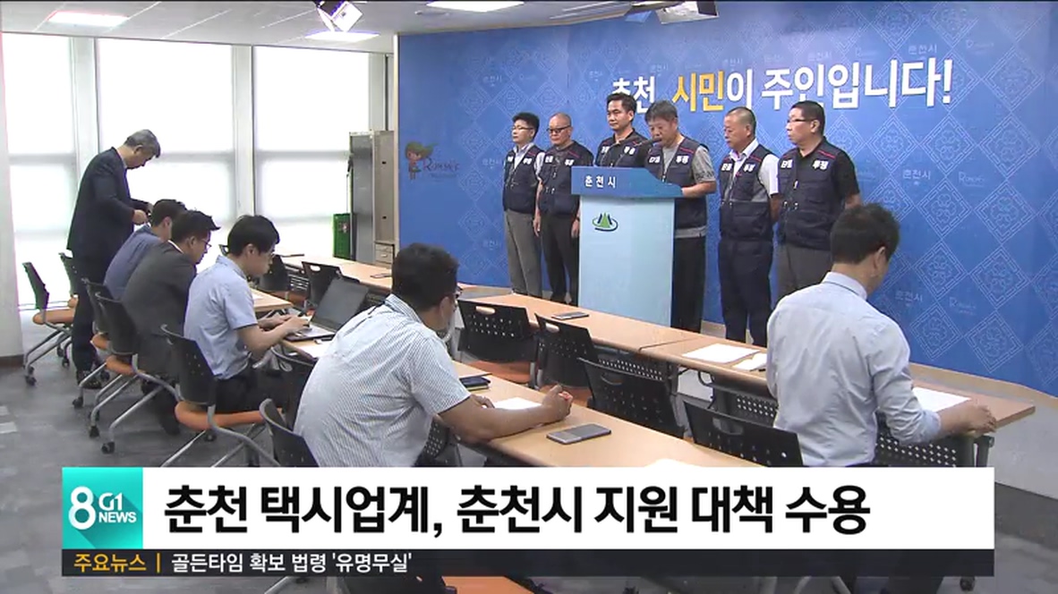 춘천시 택시협회 비상대책위원회는 오늘 춘천시청에서 기자회견을 열고, 어제 춘천시와 택시업계가 긴급 합의한 강원대 관통 노선 신설로 인한 택시업계 피해 최소화 대책을 발표했습니다.