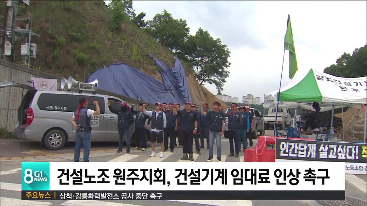 전국건설노조 강원건설기계지부 원주지회가 원주 중앙공원 공사현장의 다단계 불법 하도급 구조 근절과 건설기계 임대료 인상을 요구하며 농성을 이어가고 있습니다.